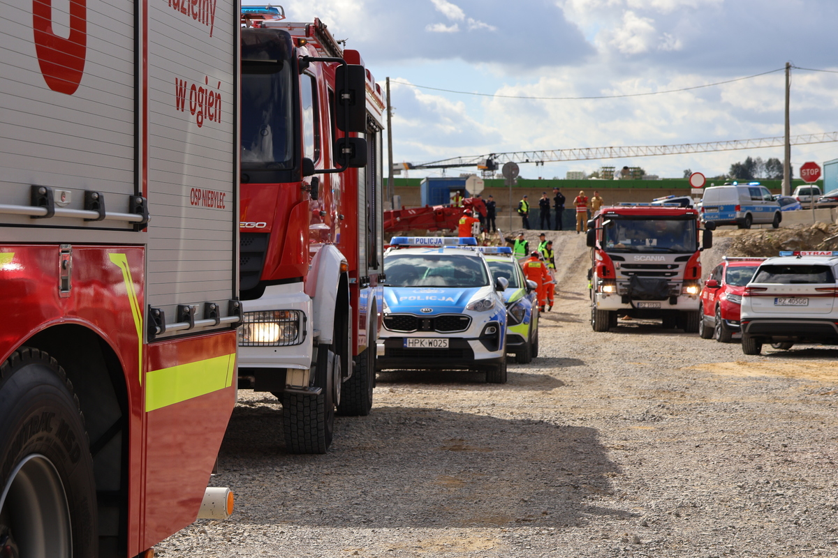Wspólne ćwiczenia strażaków i policjantów na odcinku budowy drogi ekspresowej S19
