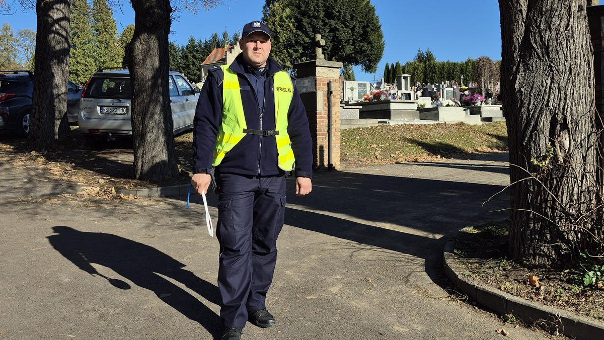 Mundurowi patrolują również rejony cmentarzy, gdzie dbają o porządek publiczny, a także o bezpieczeństwo odwiedzających groby bliskich i w każdej chwili gotowi nieść pomoc oraz służyć radą.