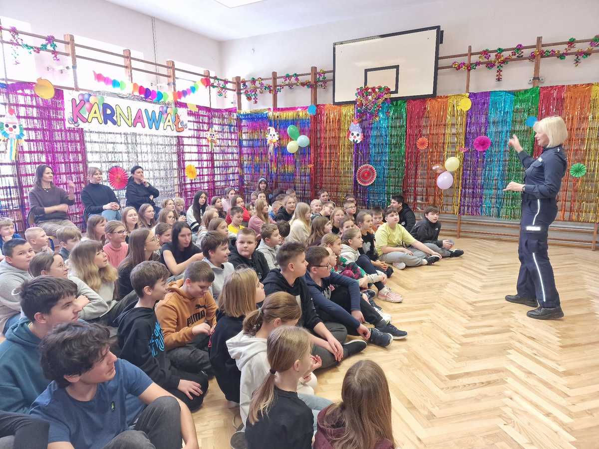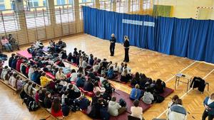 Policjanci przypominali młodym narciarzom i snowboardzistom o obowiązku używania kasków oraz o bezwzględnym zakazie korzystania z tzw. "dzikich lodowisk". Z uczniami omówione zostały również zagrożenia, z jakimi mogą spotkać się dzieci spędzające czas wolny w domu.