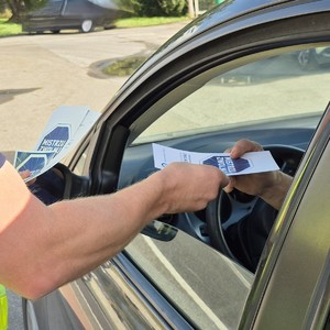 Policjanci z Wydziału Ruchu Drogowego KPP w Strzyżowie podczas kontroli drogowej promowali założenia kampanii pn. „Mistrzu, zwolnij”. Wręczali kierującym ulotki i naklejki promujące wspólną kampanię PZU i Policji.